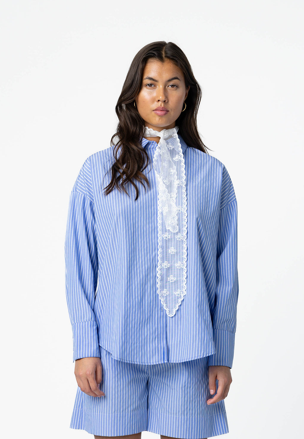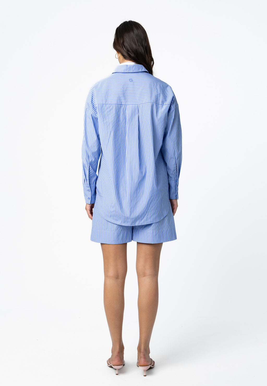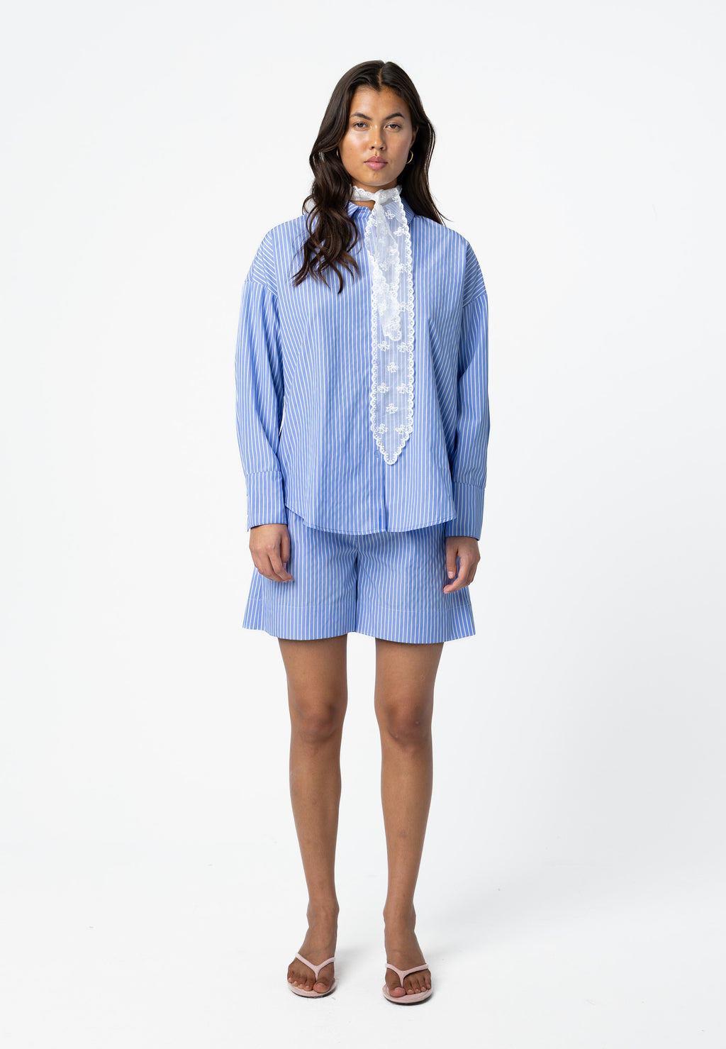 Modellen er 173 cm høj og bruger størrelse S. Hun måler 84 cm omkring brystet, 65 cm omkring taljen og 96 cm omkring hofterne.