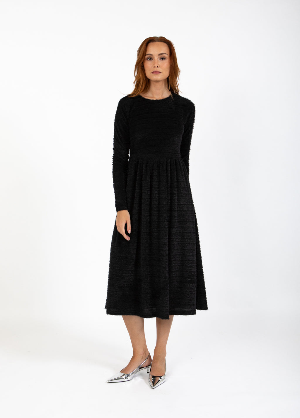 Gør vinterens kolde dage lidt varmere med denne hyggelige teddykjole. Den er lavet af blødt, fluffy materiale, der både holder dig varm og stilfuld. Style den med leggings og støvler for et afslappet, men sofistikeret look.