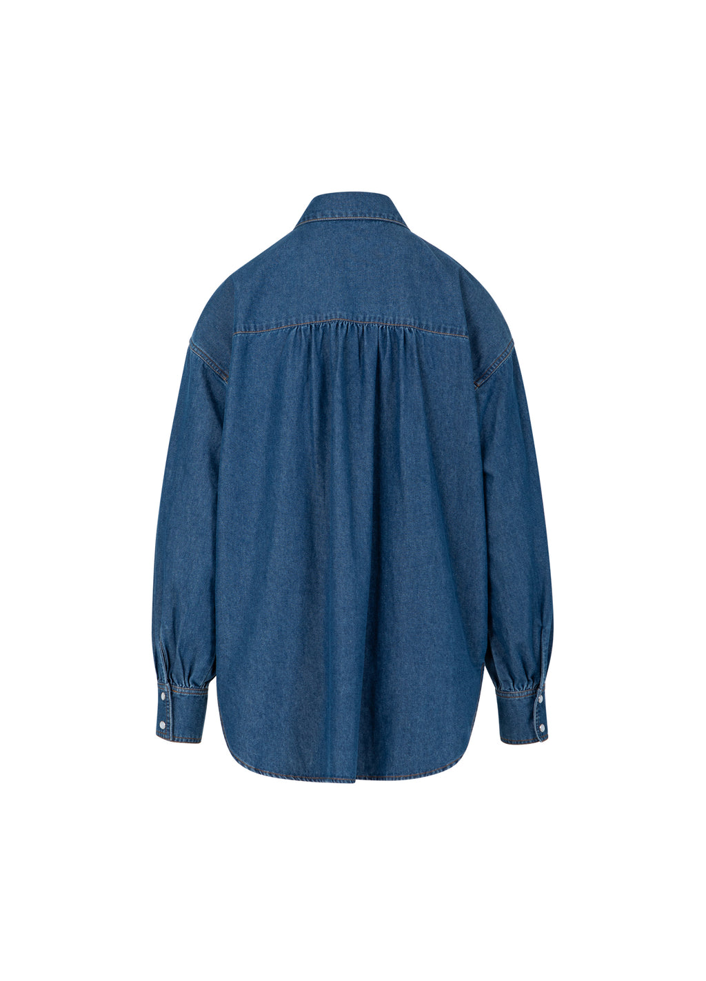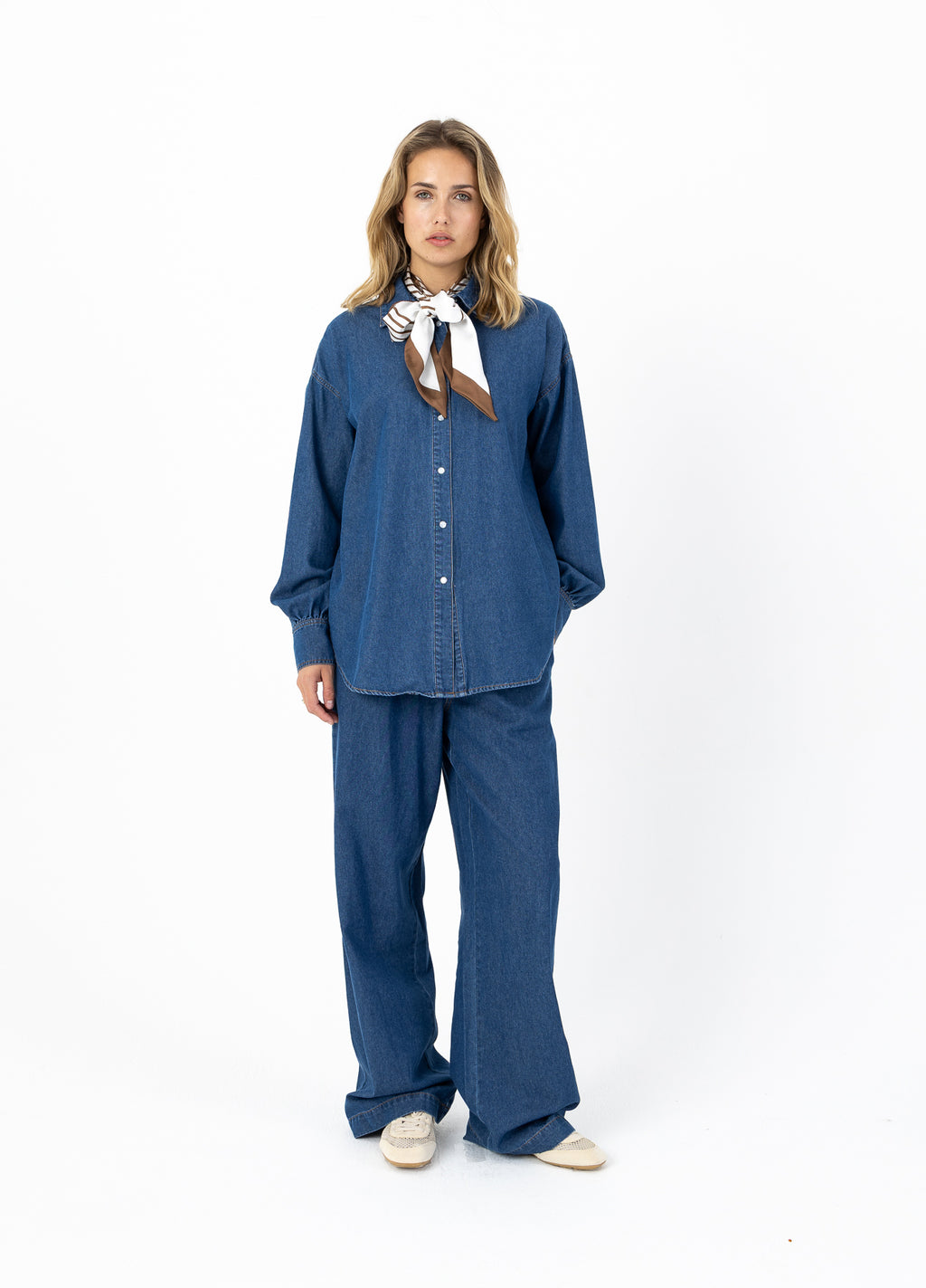 Modellen er 173 cm høj og bruger størrelse S. Hun måler 84 cm om brystet, 65 cm om taljen og 96 cm om hofterne.