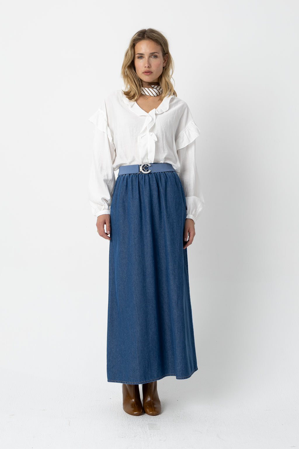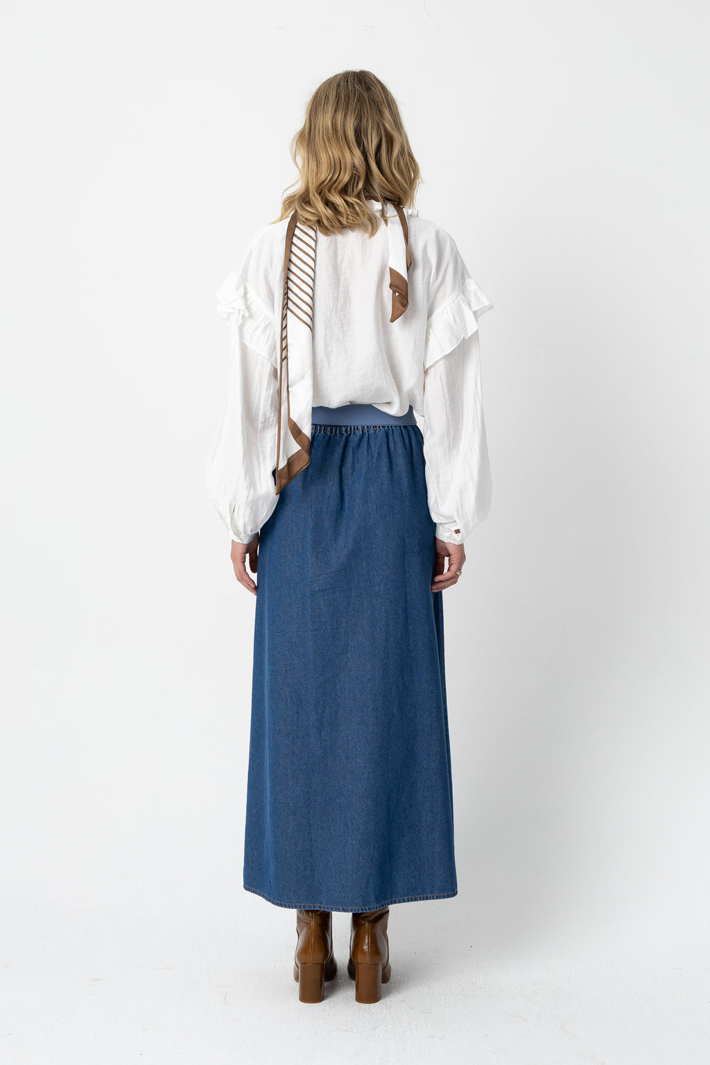 - V-udskæring med volant langs halsen ned foran