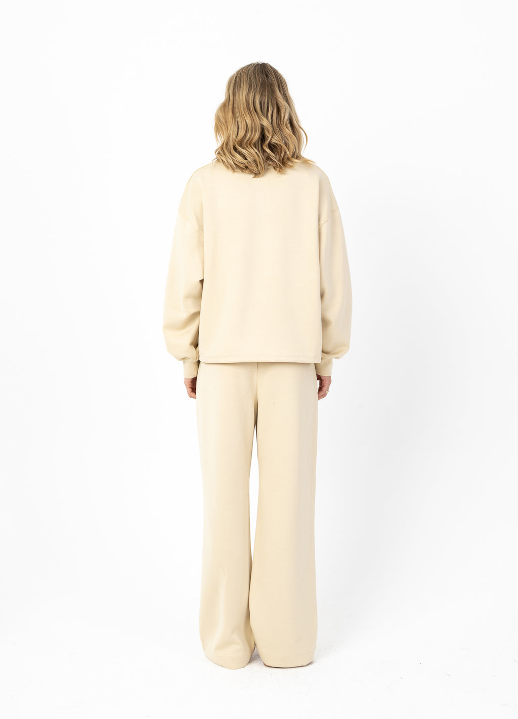 Modellen er 173 cm høj og bærer størrelse S. Hun måler 84 cm om brystet, 65 cm om taljen og 96 cm om hofterne.