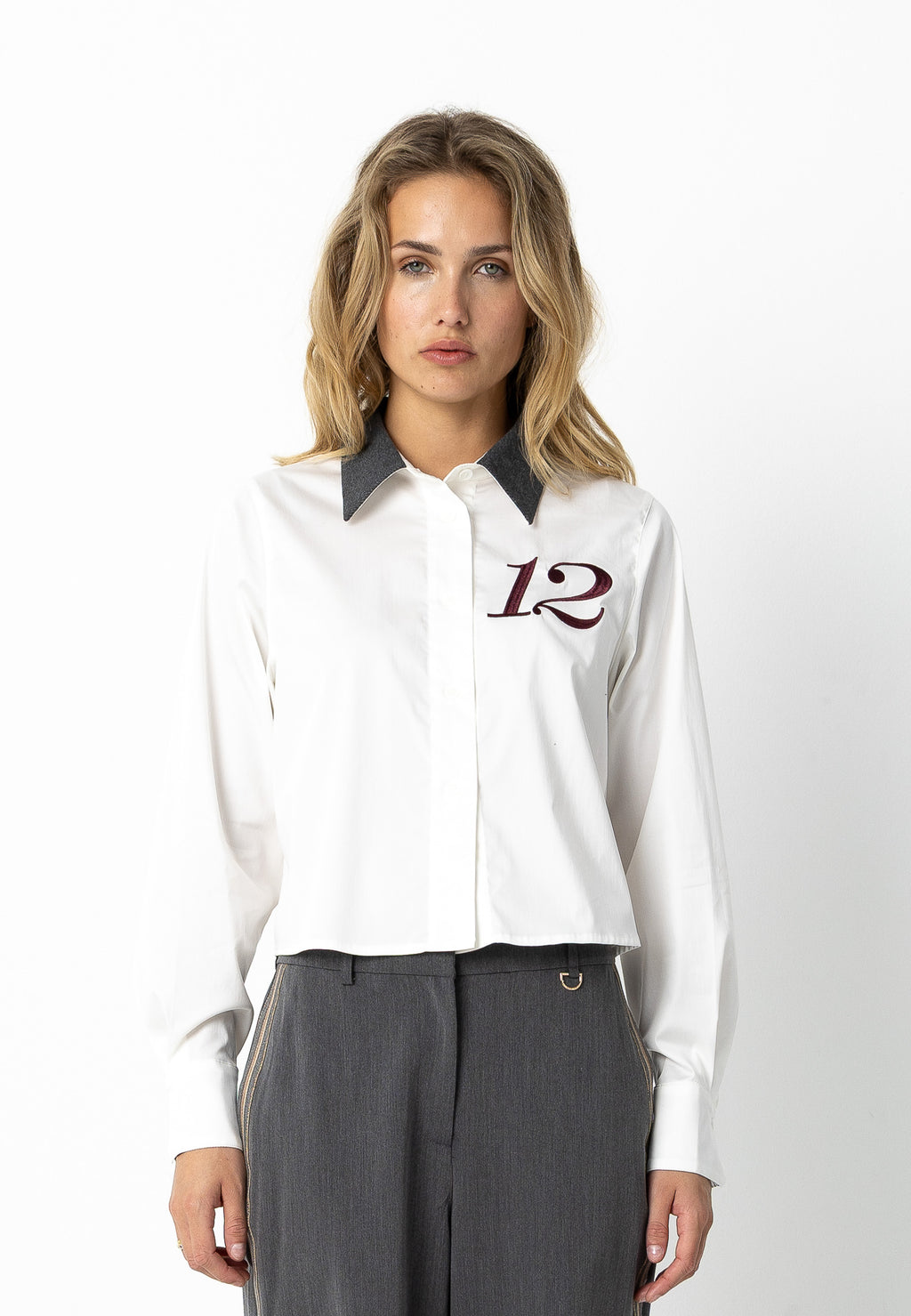 - Nr. 12 broderi på venstre side af brystet