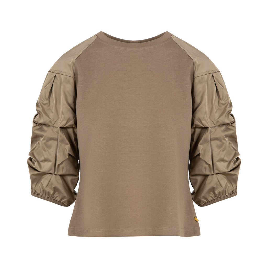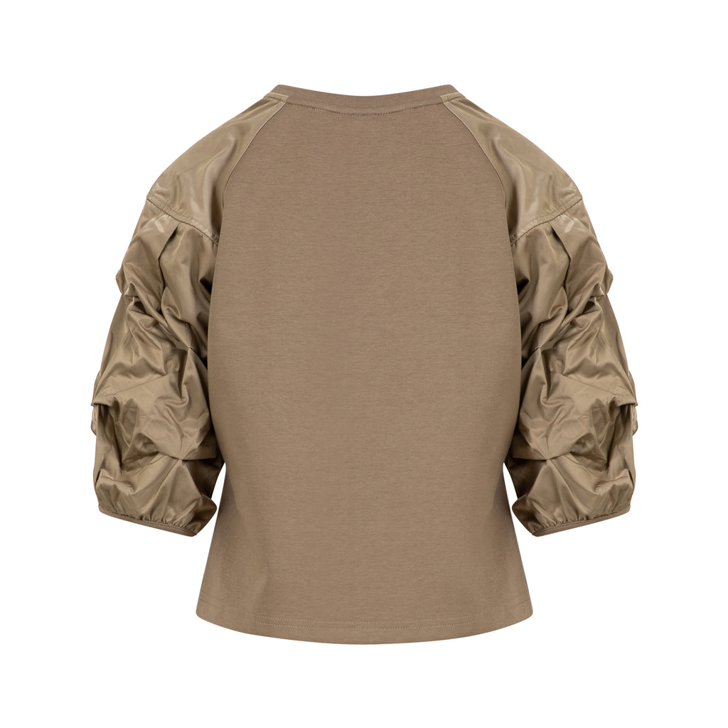 Kvalitet: Body: Cotton 81% elastane 6% polyester 13%. Sleeve: Polyester 100%