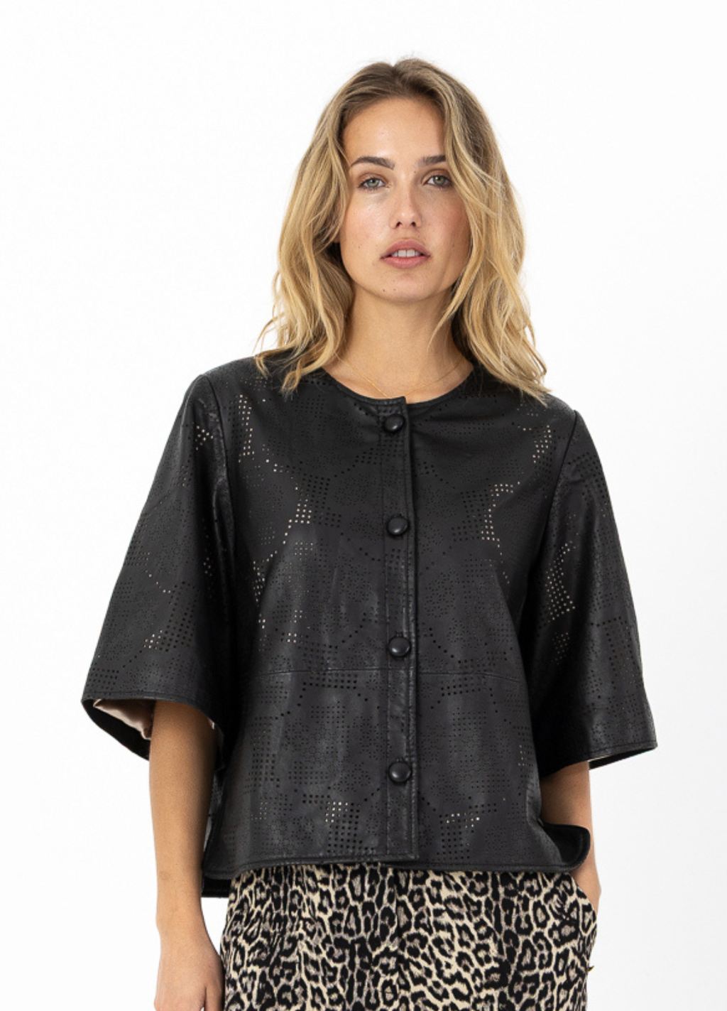 LÆDERSKJORTE MED LASERSKÅRET MØNSTER