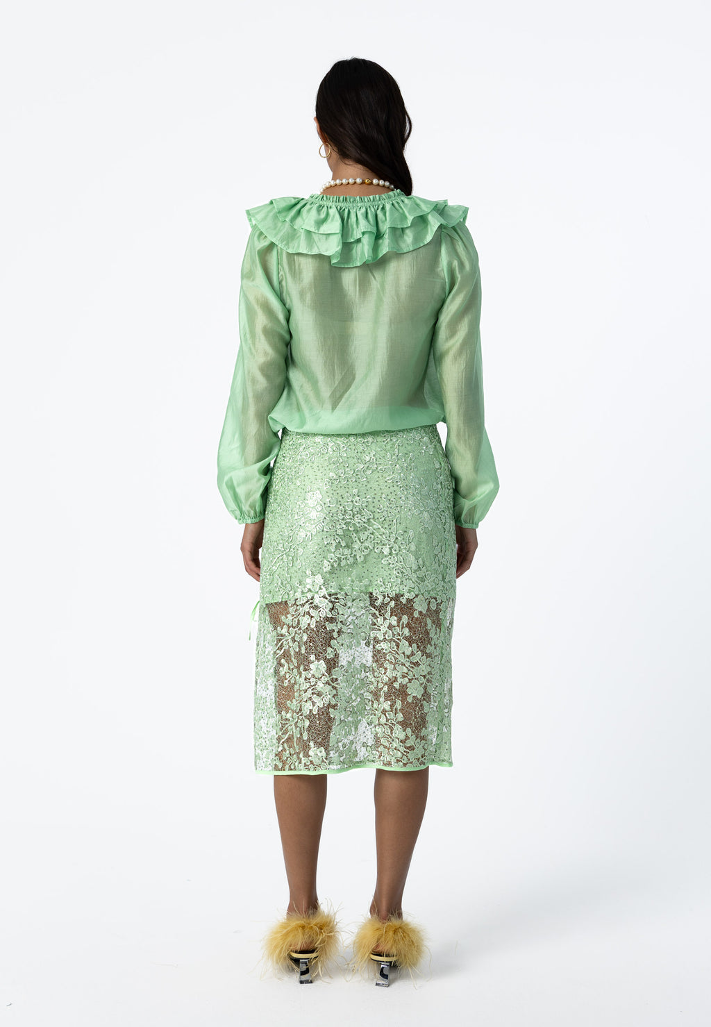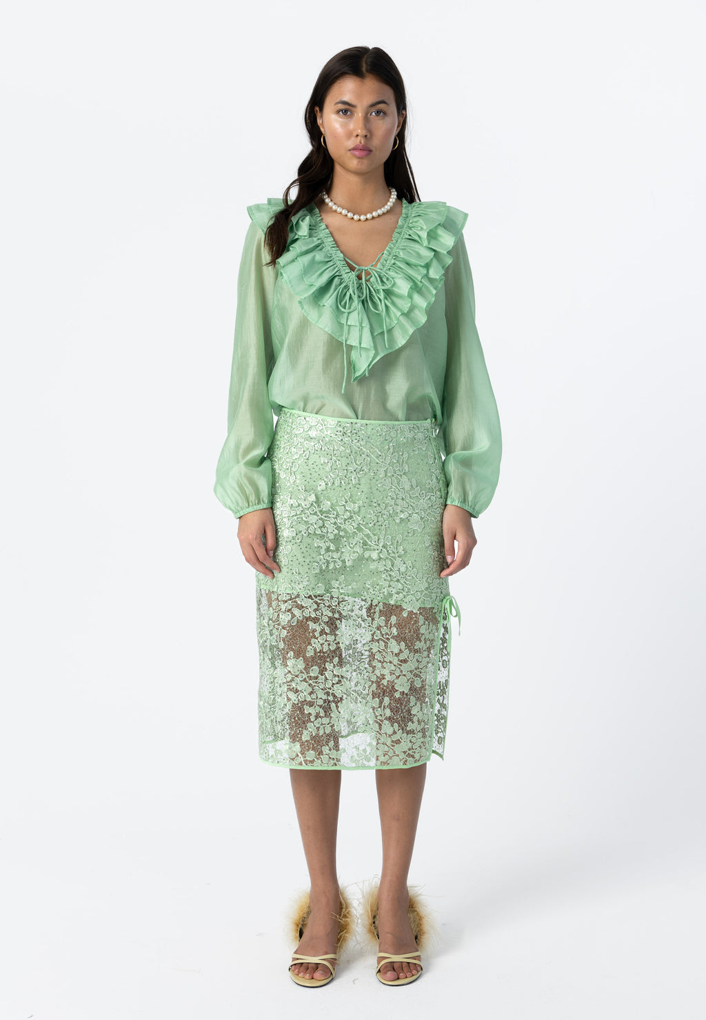 BLUSE MED FLÆSER OG BÅND