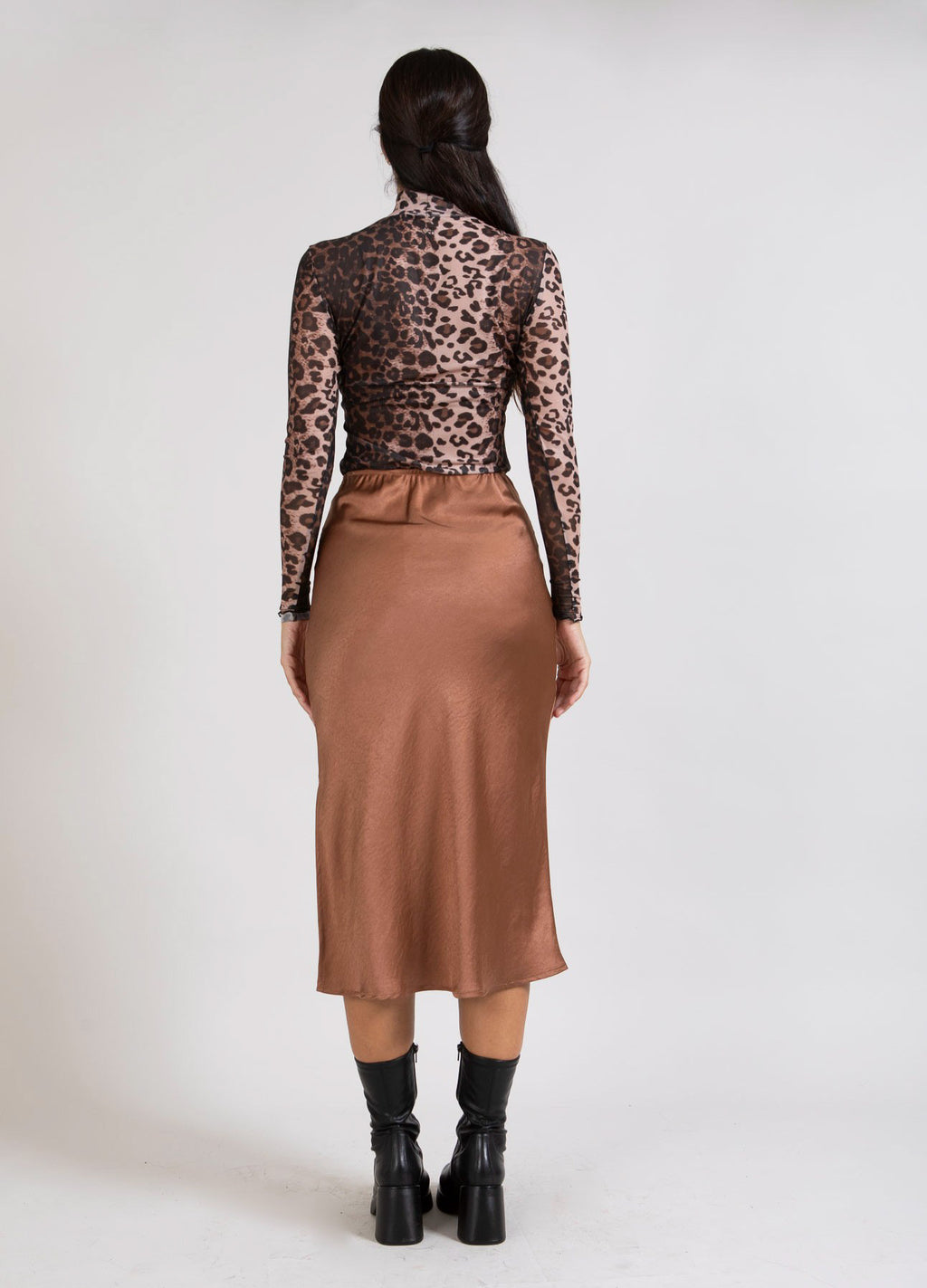 Skyler fra CC Heart er en mellemlang nederdel i et blødt og skinnende stof.