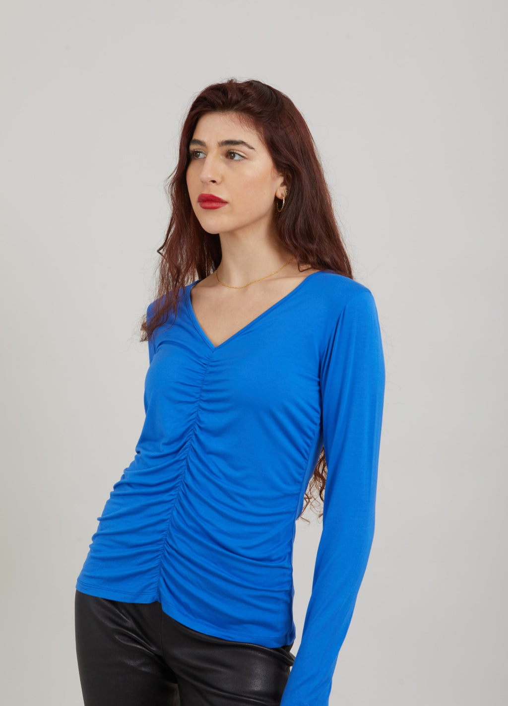 Sofia er en tynd, tætsiddende langærmet med v-hals. Sofia er super blød og har en lækker elastisk pasform.