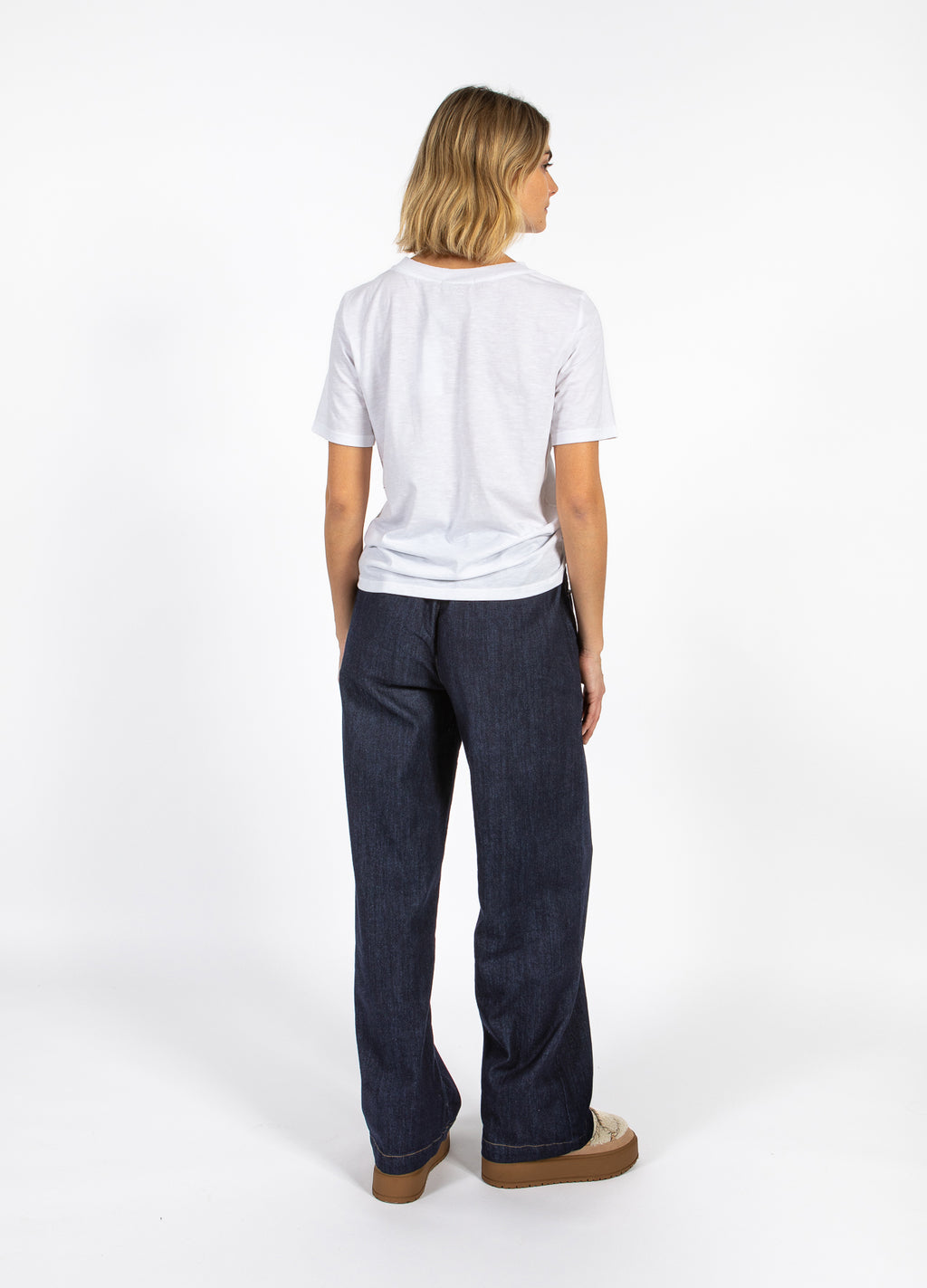 Modellen er 176 cm høj og bruger størrelse S. Hun måler 81 cm omkring brystet, 63 cm omkring taljen og 95 cm omkring hofterne.