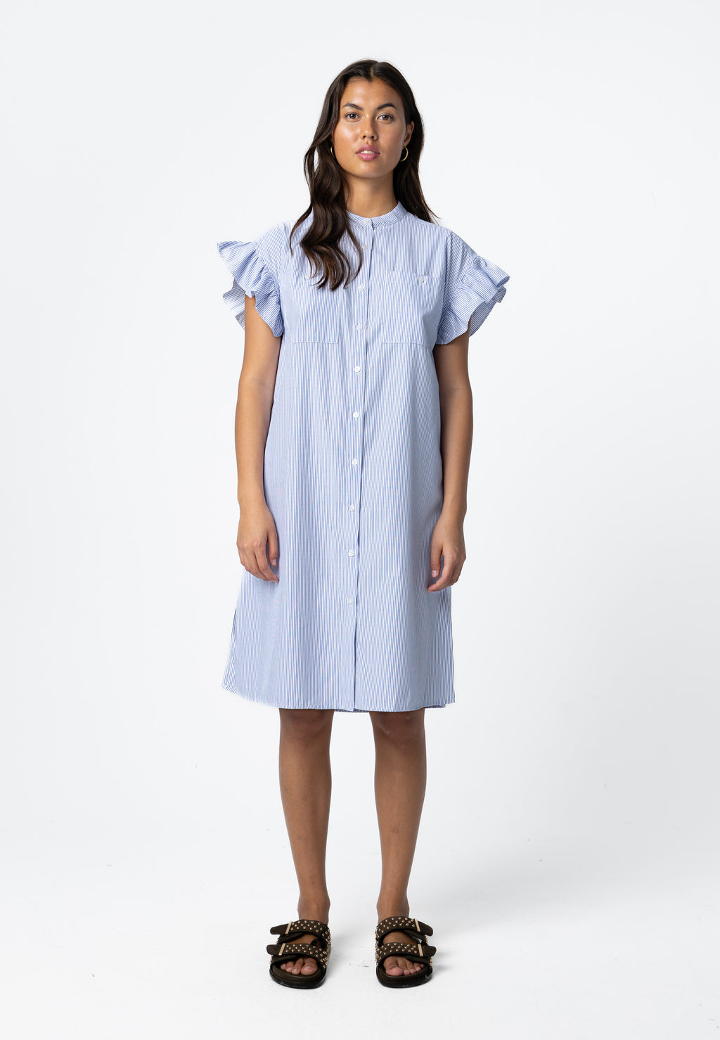 Modellen er 173 cm høj og bruger størrelse S. Hun måler 84 cm omkring brystet, 65 cm omkring taljen og 96 cm omkring hofterne.