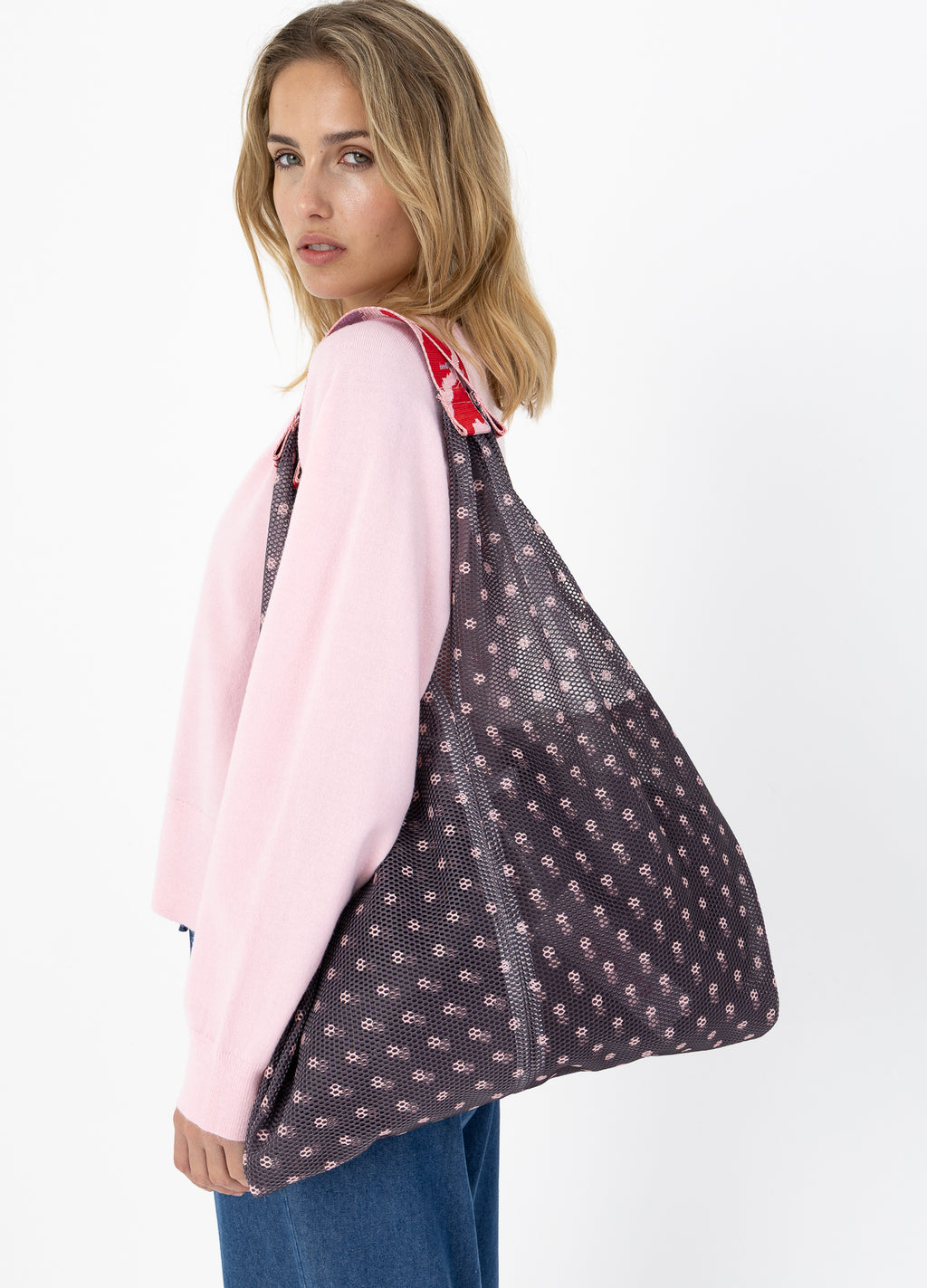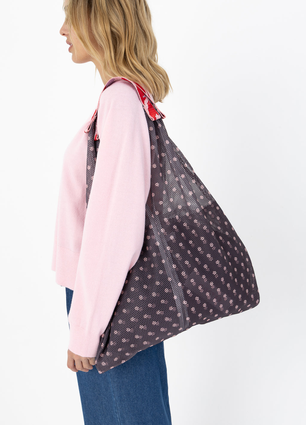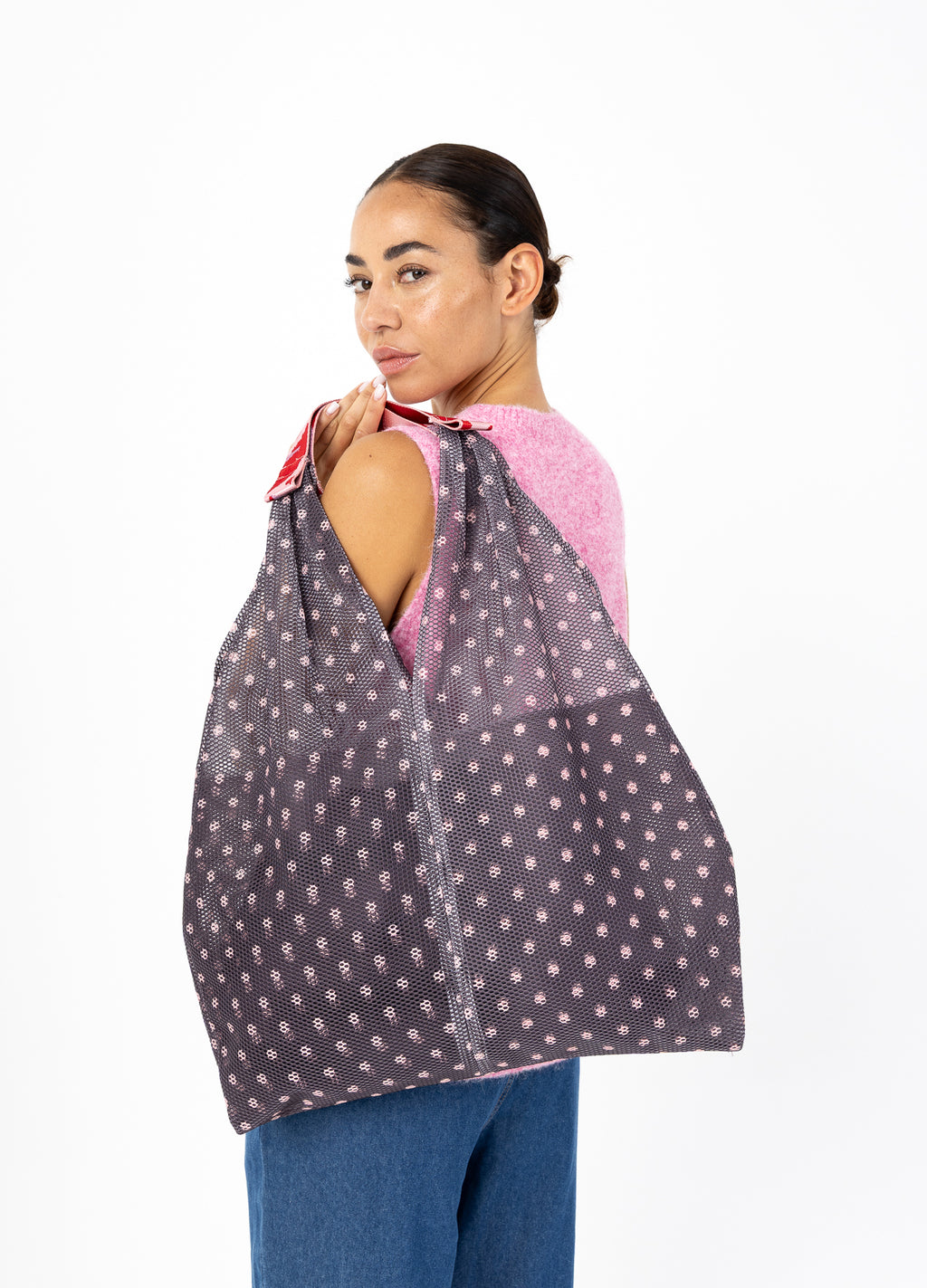 Denne netpose er perfekt som både en indkøbstaske eller arbejdstaske. Du kan bære den over skulderen eller i hånden.