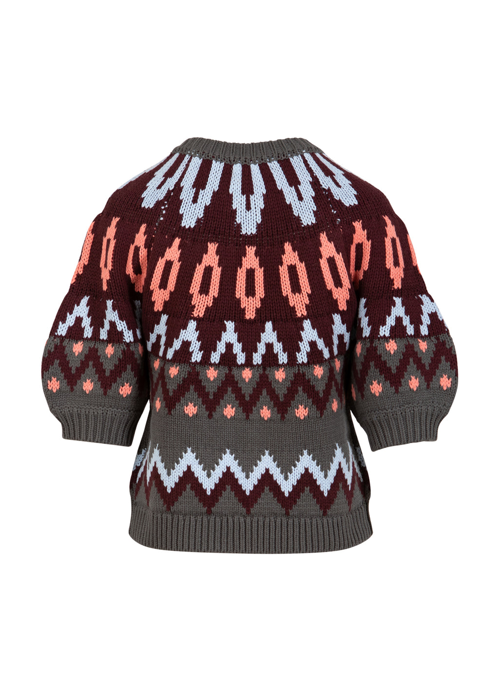 Modellen er 182 cm høj og bærer størrelse S. Hendes bryst måler 82 cm, talje 61 cm og hofter 93 cm.
